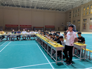 时间:2019年9月13日 地点:体育馆 人物:徐书记、陈科长、李科长、体育学院所有学生