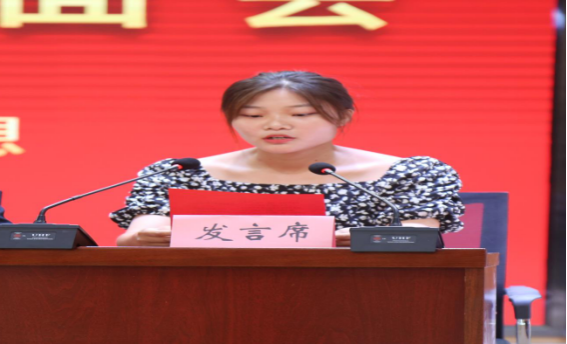 随后,2022届优秀毕业生代表逯静怡同学以自身经历激励新同学脚踏实地的学习,努力前进,奋勇向前,做积极向上的大学生。